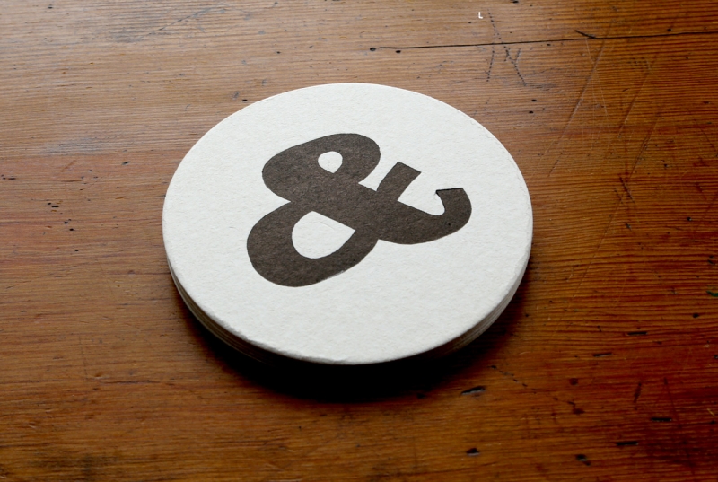 These gorgeous 107mm diameter beermats are printed with a vintage wood block '&' in black ink onto natural white pulpboard.